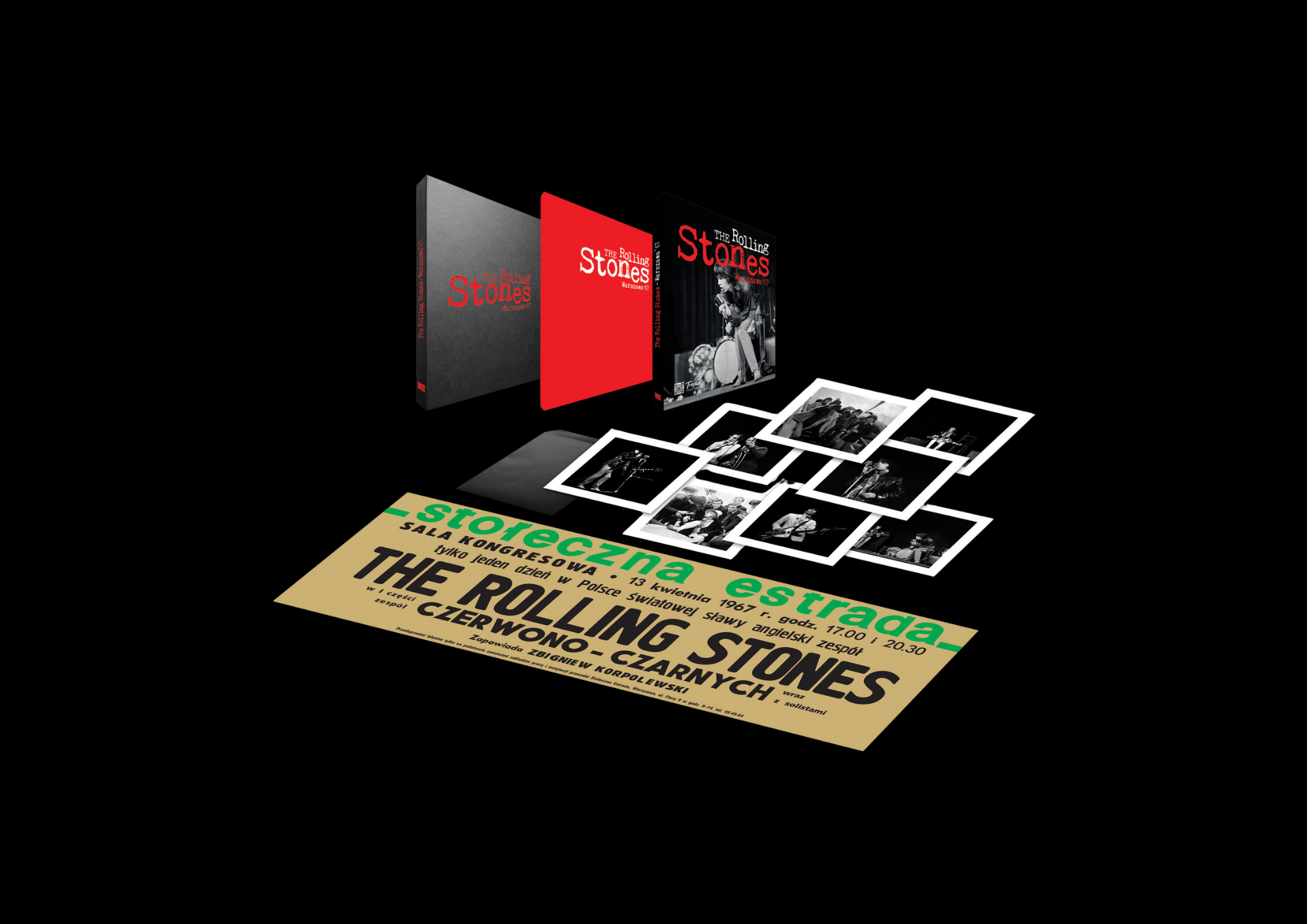 „ROLLING STONES – WARSZAWA ’67” – książka zawierająca fotografie i wspomnienia kilkudziesięciu osób, dokumentująca trzęsienie ziemi jakie miało miejsce 13.04.1967 roku. W ofercie limitowanej dostępna w ekskluzywnym boxie zawierającym pakiet pamiątek z epoki.